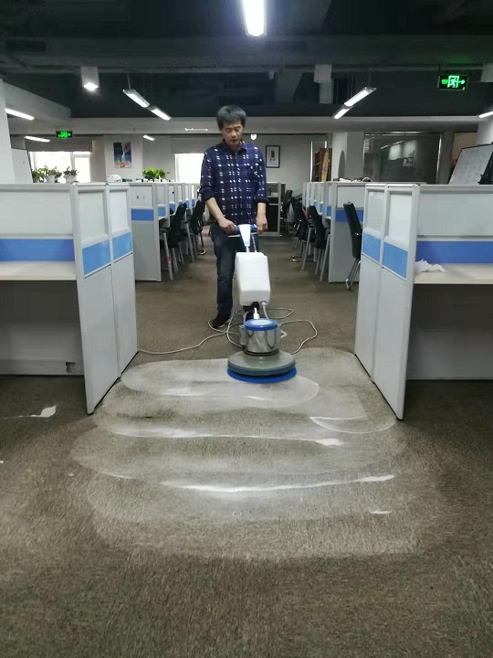 北京正和嘉業(yè)環(huán)保科技有限公司清洗地毯施工流程 一、水抽深層地毯清洗的操作辦法(需要甲方提供水和電) 1、地毯清洗前需要提前把挪動物品放到辦公桌上面,離開地面以防潮濕損壞物品。 2、將地毯頑固污漬(油漬,茶漬)做特殊處理 使地毯清潔劑自動作用10-15分鐘,污漬開始脫離纖維(陳舊 磨損 長時間滲透地毯內(nèi)部 只能減輕), 3、用專用地毯清潔劑按比例稀釋好并注入地毯清洗機(jī)水箱,從里到外以重疊N字型方法抽洗地毯(非專業(yè)師傅誤操作機(jī)器,)特別臟地方需要重復(fù)清洗。 4、清洗地毯的同時,需要及時用吸水機(jī)吸凈已洗完的地毯, 5、地毯自然晾干或打開窗戶或空調(diào)可以加快地毯干透, 6、在地毯未干之前,避免行走踩踏。 7,地毯清洗時間建議每2-3個月清洗一次,地毯如衣服,地毯長時間不清洗,污漬 油污容易滲透到地毯纖維里面,容易滋生細(xì)菌,更容易縮短地毯使用年限。 辦公區(qū)域人員流動量比較大,地毯臟的比較快,弄臟以后不僅十分難看,而且還會滋生細(xì)菌,危及人員的身體健康。因此必須選擇專業(yè)的地毯清洗公司制作一份長期持久的地毯清洗計劃,隨時保持地毯清潔效果,阻止細(xì)菌滋生。