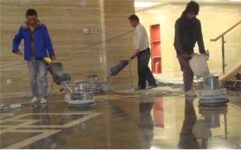 大理石結(jié)晶 處理是以晶硬粉及水晶加強(qiáng)劑配合機(jī)械,利用壓力和熱力先讓藥劑發(fā)生化學(xué)反應(yīng)作用于石材表層,將石材面層下的毛細(xì)孔封閉,阻止污垢滲入石材內(nèi)部。再對(duì)石材表層進(jìn)行晶硬處理,起到增加石材表面硬度及亮度的作用,同時(shí)具有防滑的效果,這樣,石材原有的天然色澤起到顯露及全面保護(hù)作用,保持度較一般蠟水高3-5倍,且無需起蠟及補(bǔ)蠟等復(fù)雜保養(yǎng)工序,長(zhǎng)期使用能節(jié)約人力物力。 結(jié)晶材料 1.大理石晶硬劑、大理石晶硬粉和配套保養(yǎng)液 2.鋼絲棉:0號(hào)鋼絲棉、1號(hào)鋼絲棉、1號(hào)不銹鋼鋼絲棉 3.打磨墊:馬毛墊、白墊、紅墊 結(jié)晶施工 1、使用洗地機(jī)先將大理石表面徹底清洗。 2、用純凈水將結(jié)晶粉調(diào)成糊狀,均勻涂抹在研磨墊上。 3、用結(jié)晶機(jī)配合結(jié)晶粉或結(jié)晶藥劑開始研磨。 4、當(dāng)理石表面結(jié)成高光晶面后,用吸水機(jī)吸掉地面殘留糊狀物。 5、用拋光墊拋光,使地面完全干燥、光亮如鏡。 驗(yàn)收 1、邊角與中央保持一致,光亮照人。 2、無污跡.無腳印及劃痕。 結(jié)晶特點(diǎn) 1、大理石結(jié)晶后石材表面整體均勻、清澈,有鏡面的感覺,顯現(xiàn)出石材原有的天然色澤。 2、光澤度高,可達(dá)85-100度以上,基本達(dá)到新出廠石材的標(biāo)準(zhǔn)。 3、硬度高,不易劃傷,一般硬物(或自然行走)不會(huì)對(duì)石材造成磨損。 4、表面干爽,不吸附灰塵,便于每日用靜電油推塵。